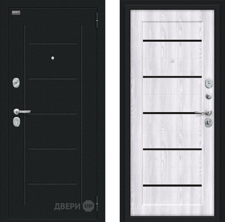 Входная металлическая Дверь Bravo Борн Букле черное/Riviera Ice в Фрязино 860х2050 мм
