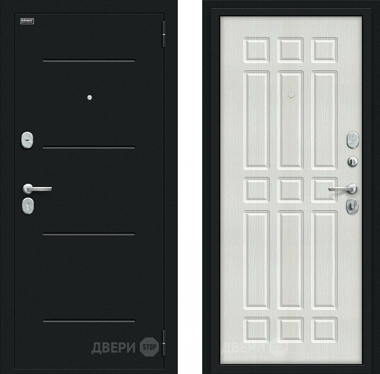 Входная металлическая Дверь Bravo Мило Букле черное/Bianco Veralinga в Фрязино 860х2050 мм