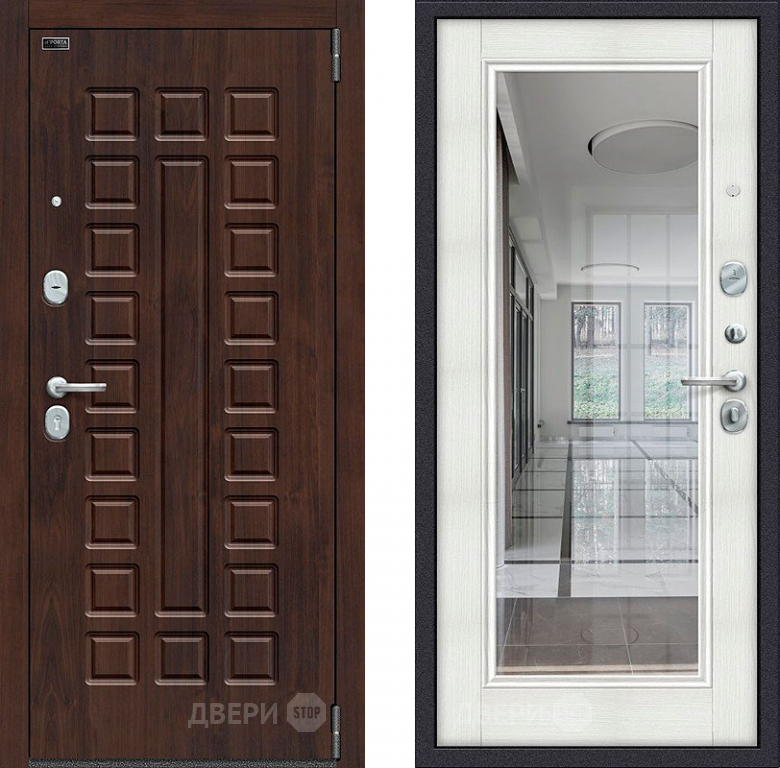 Входная металлическая Дверь Bravo Porta S-3 51/П61 с зеркалом Бьянко в Фрязино 860х2050 мм