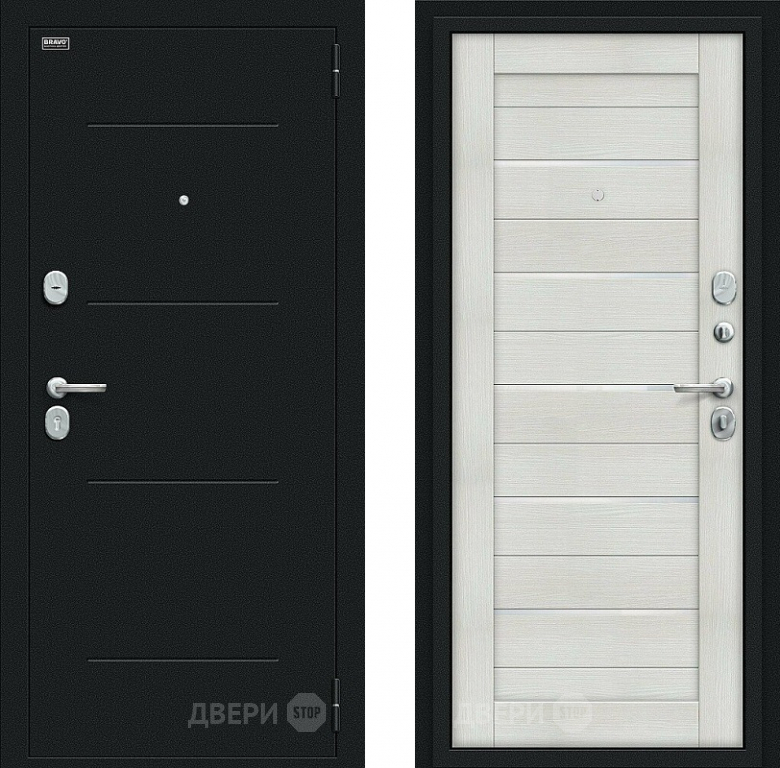 Входная металлическая Дверь Bravo Техно Kale Букле черное/Bianco Veralinga в Фрязино 860х2050 мм