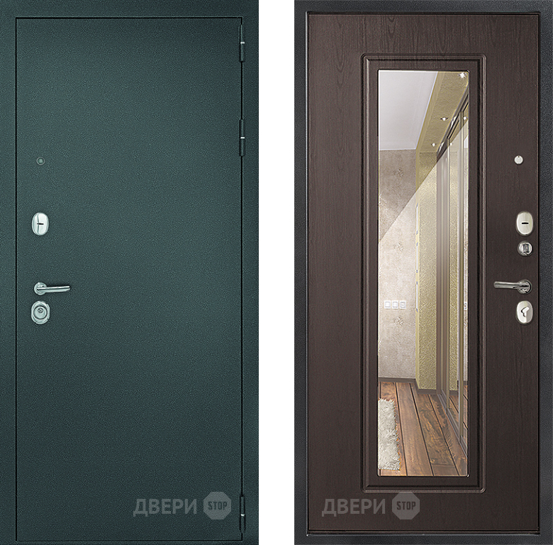 Входная металлическая Дверь Дверной Континент Рубикон Серебро Зеркало Венге в Фрязино 860х2050 мм