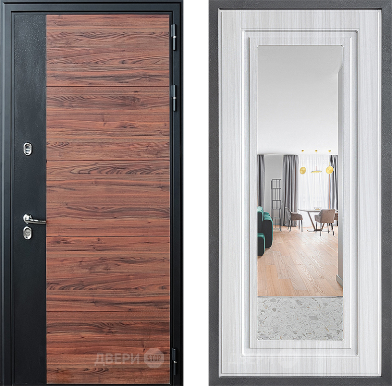 Входная Дверь Дверной континент ДК-15 Красное Дерево ТЕРМО ФЛЗ Зеркало Сандал белый 860x2050 мм
