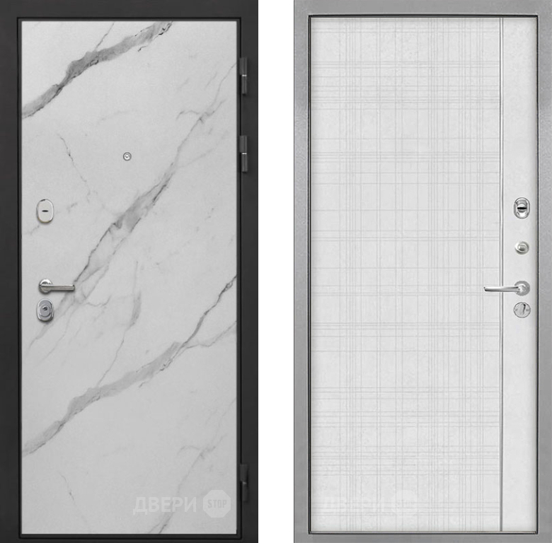 Входная Дверь Интекрон (INTECRON) Гектор Мрамор Арктик В-07 с молдингом Лофт белый 860x2050 мм