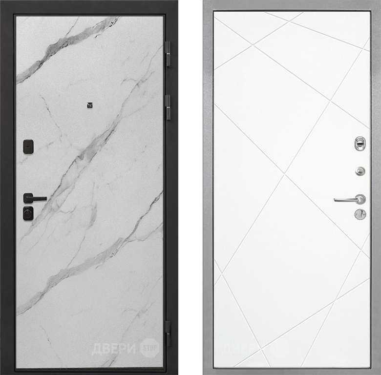 Входная Дверь Интекрон (INTECRON) Профит Black Мрамор Арктик Лучи-М Софт милк 860x2050 мм