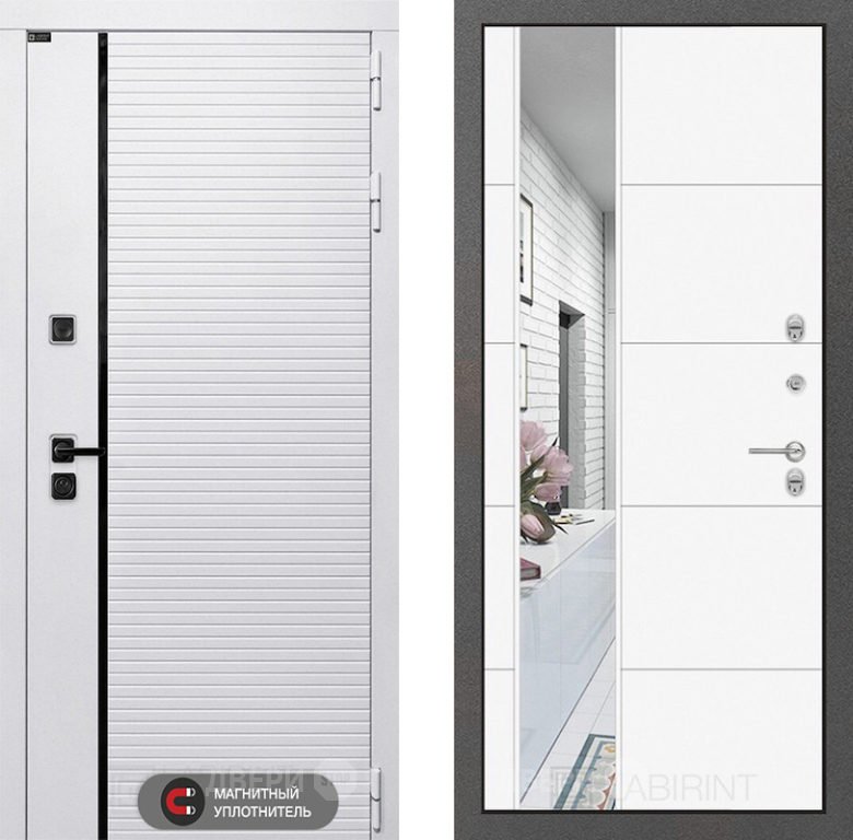 Входная Дверь Лабиринт (LABIRINT) Royal Зеркало 19 Белый софт 860x2050 мм