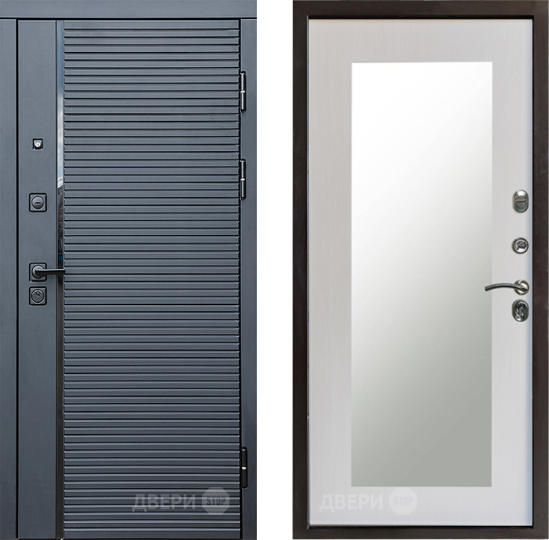 Входная Дверь Престиж Черная Линия Зеркло Пастораль Лиственница белая 860x2050 мм