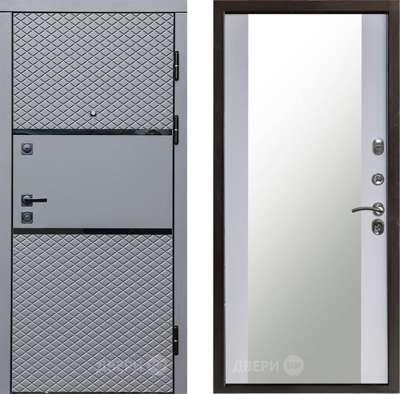 Входная Дверь Престиж Ромб Зеркало Белый софт 960x2050 мм