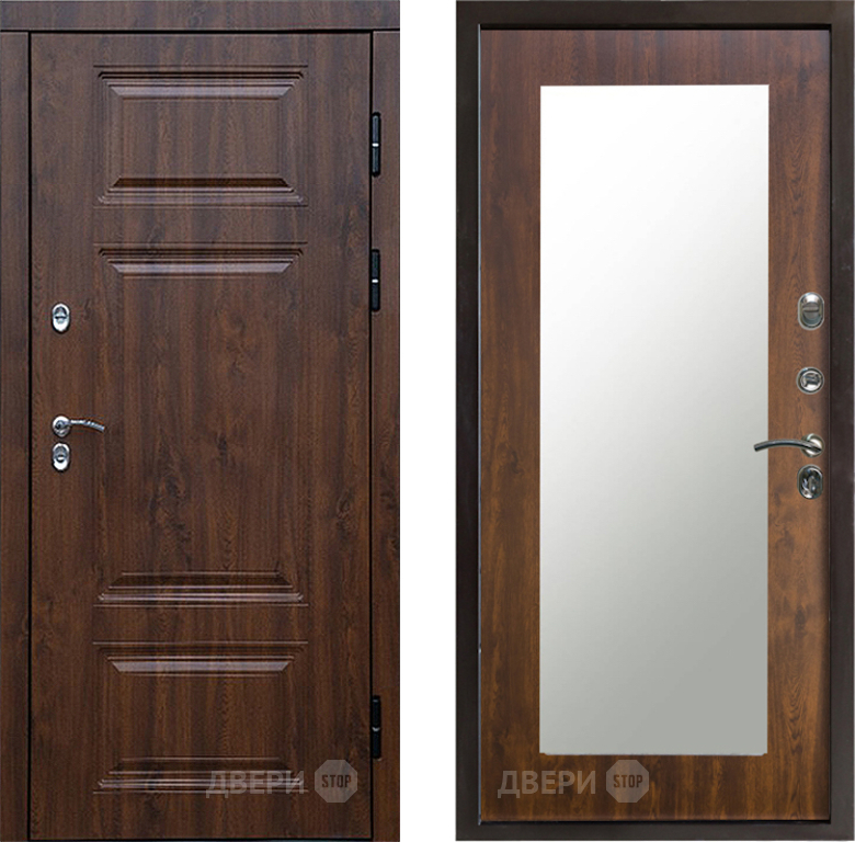 Входная Дверь Престиж TERMO с терморазрывом Премиум Орех Зеркало пастораль Дуб 860x2050 мм