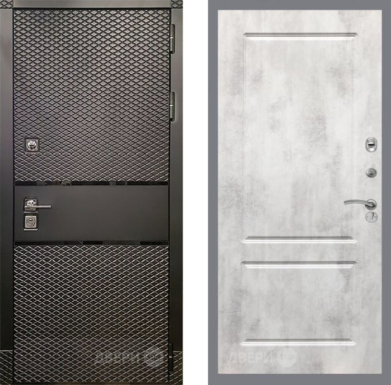 Входная Дверь Рекс (REX) 15 Черный Кварц FL-117 Бетон светлый 960x2050 мм