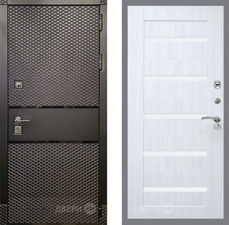 Входная Дверь Рекс (REX) 15 Черный Кварц СБ-14 стекло белое Сандал белый 960x2050 мм