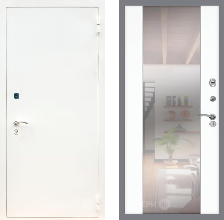 Входная Дверь Рекс (REX) 1А Белая шагрень СБ-16 Зеркало Силк Сноу 860x2050 мм