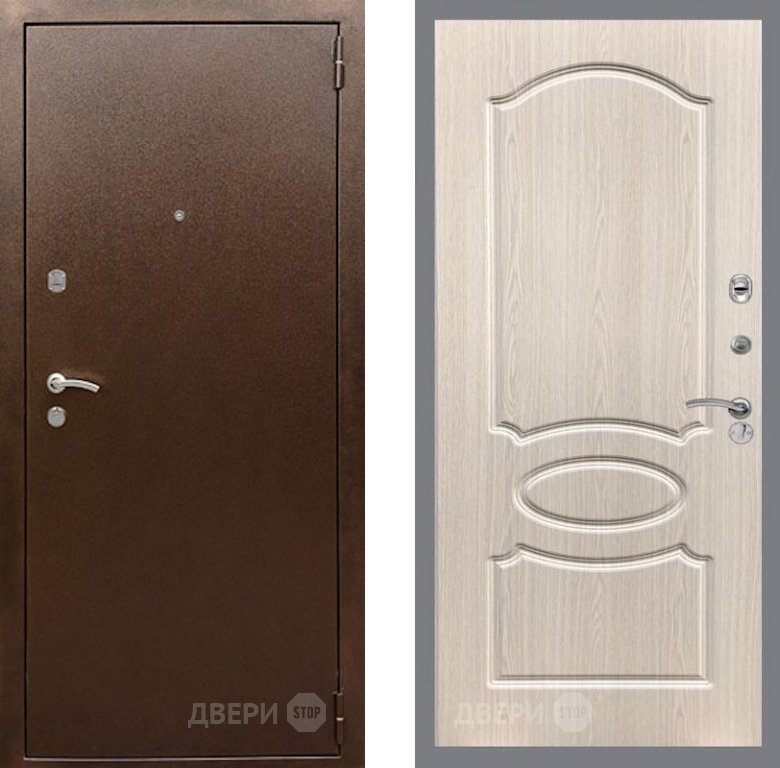 Входная Дверь Рекс (REX) 1А Медный Антик FL-128 Беленый дуб 860x2050 мм