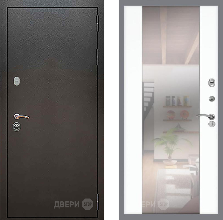 Входная Дверь Рекс (REX) 5 Серебро Антик СБ-16 Зеркало Силк Сноу 960x2050 мм