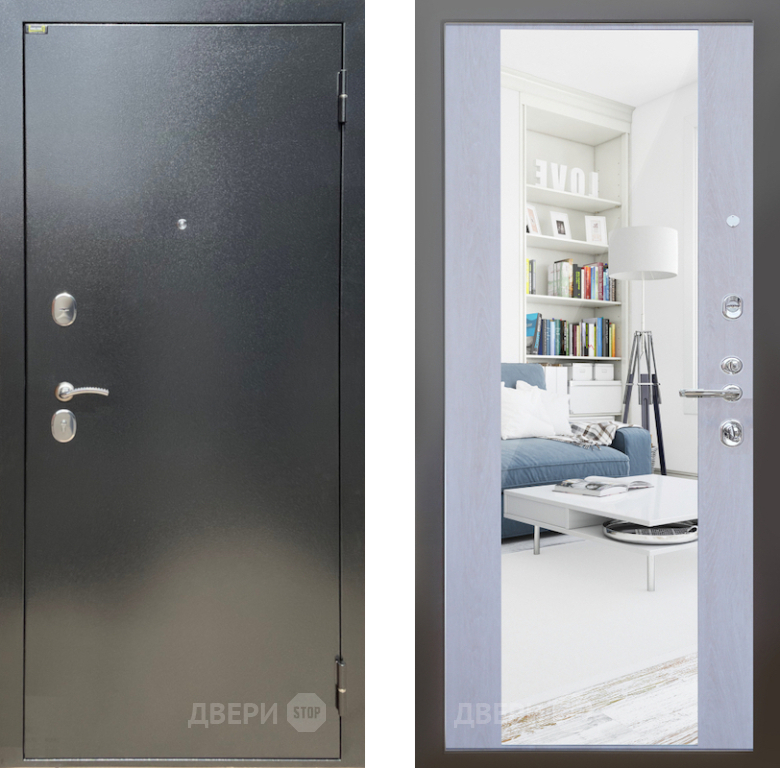 Входная Дверь Шелтер (SHELTER) Стандарт 12 с зеркалом Дуб филадельфия крем 860x2050 мм