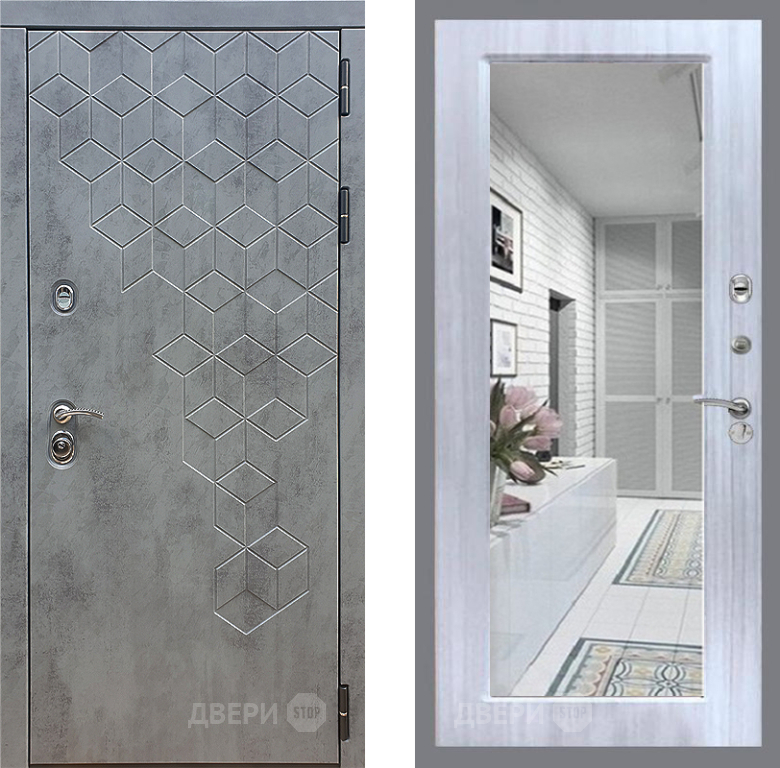 Входная Дверь Стоп БЕТОН Зеркало Сандал белый 960x2050 мм