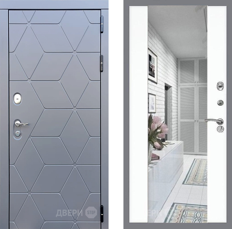 Входная Дверь Стоп КОСМО Зеркало СБ-16 Силк Сноу 960x2050 мм