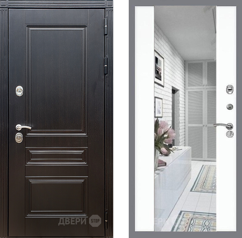 Входная Дверь Стоп МЕГАПОЛИС Зеркало СБ-16 Силк Сноу 960x2050 мм