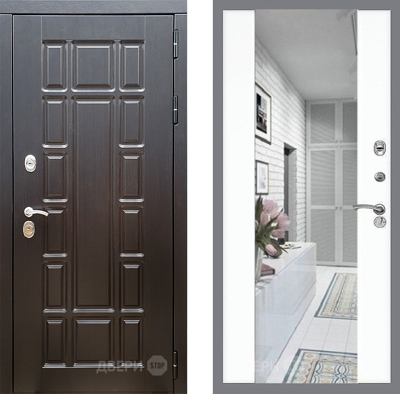 Входная Дверь Стоп НЬЮ ЙОРК Зеркало СБ-16 Силк Сноу 860x2050 мм