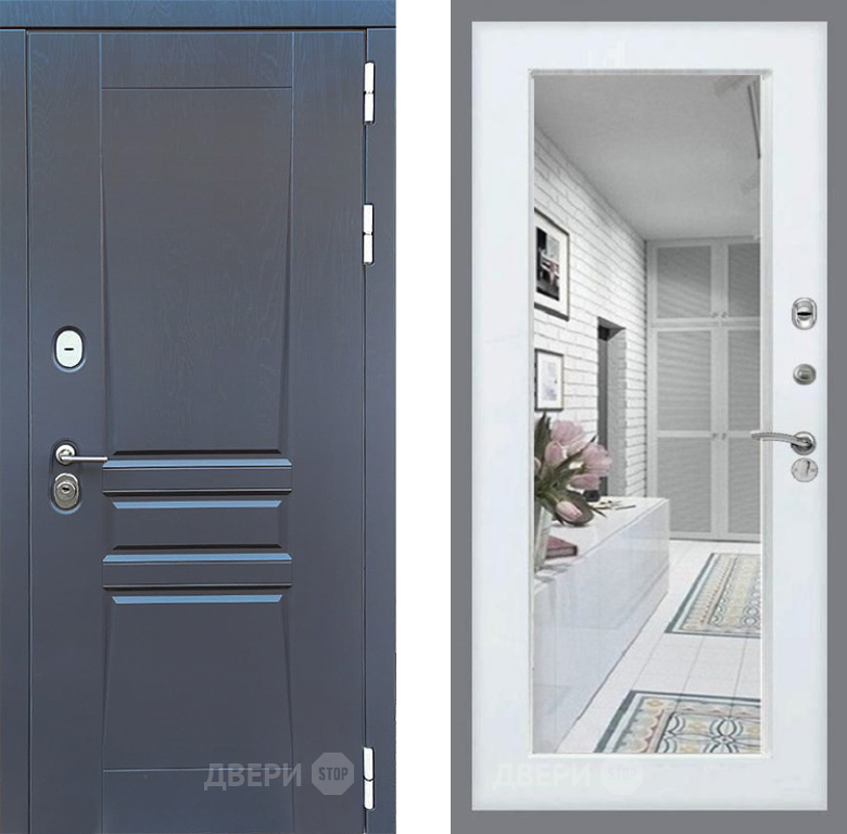 Входная Дверь Стоп ПЛАТИНУМ Зеркало Белый ясень 960x2050 мм