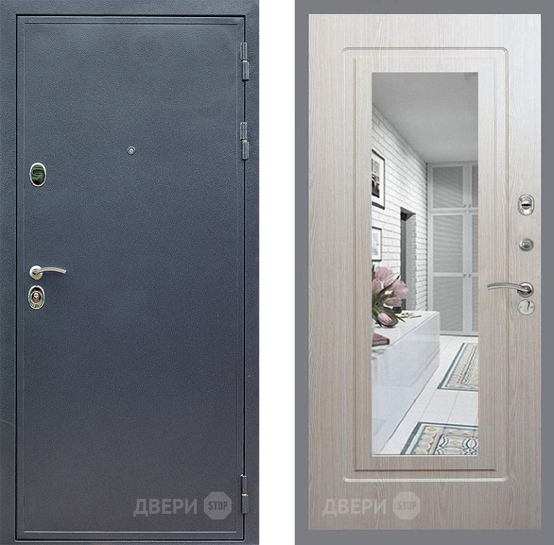 Входная Дверь Стоп СИЛЬВЕР Зеркало ФЛ-120 Беленый дуб 960x2050 мм