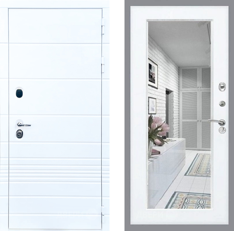 Входная Дверь Стоп ТРЕНДО Зеркало Силк Сноу 860x2050 мм