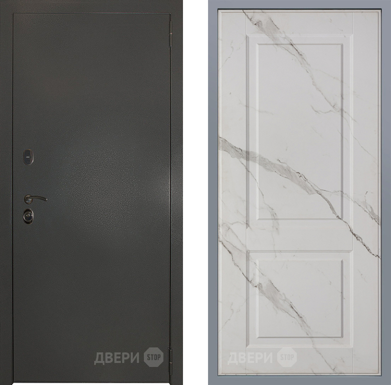 Входная Дверь Заводские двери Эталон 3к антик серебро Доррен Мрамор белый 960x2050 мм
